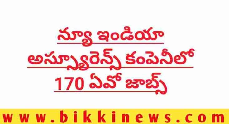 BIKKI NEWS (SEP. 10) : 170 AO JOBS IN NEW INDIA ASSURANCE COMPANY. న్యూ ఇండియా అస్స్యూరెన్స్ కంపెనీ లిమిటెడ్ లో 170 అడ్మినిస్ట్రేటీవ్ ఆఫీసర్ ఉద్యోగాల భర్తీ కొరకు నోటిఫికేషన్ జారీ అయింది.