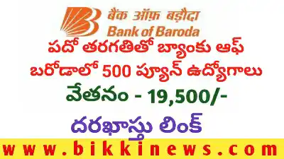 BIKKI NEWS (MAY 04) : 500 OFFICE ASSISTANT JOBS IN BANK OF BARODA WITH 10th qualification. బ్యాంక్ ఆఫ్ బరోడా పదో తరగతి అర్హతతో 500 ఆఫీస్ అసిస్టెంట్ (ప్యూన్) పోస్టుల భర్తీ కోసం నోటిఫికేషన్ జారీ చేసింది.