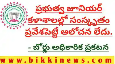 BIKKI NEWS (APR. 25) : Board says There is no plan to introduce Sanskrit in government junior colleges. తెలుగుకు ప్రత్యామ్నాయంగా సంస్కృతం సబ్జెక్టును ప్రవేశపెడుతున్నట్లు పేర్కొంటున్న వార్తలు పూర్తిగా అవాస్తవం అని, రీజినల్ జాయింట్ డైరెక్టర్ శ్రీమతి. జయప్రద బాయి గారు తెలియజేశారు.
