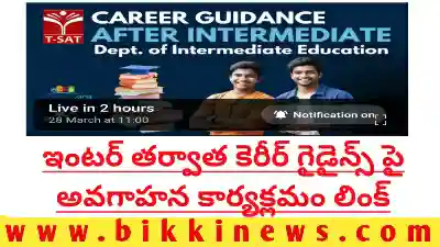 BIKKI NEWS (MARCU 28) : Career guidance programme for inter complete students. ఇంటర్మీడియట్ విద్య పూర్తి చేసిన విద్యార్థులు తమ భవిష్యత్తు కోసం సరైన కోర్సును ఎంచుకునేలా మార్గదర్శకత్వం అందించేందుకు టి-సాట్- సాఫ్ట్ నెట్ ప్రత్యేక లైవ్ కార్యక్రమాన్ని నిర్వహిస్తోంది. ఈ కార్యక్రమాన్ని తెలంగాణ ఇంటర్మీడియట్ విద్యా శాఖ ఆధ్వర్యంలో నిర్మాణ్ ఫౌండేషన్ మరియు ఆస్మాన్ ఫౌండేషన్ సంయుక్తంగా నిర్వహించనున్నాయి.
