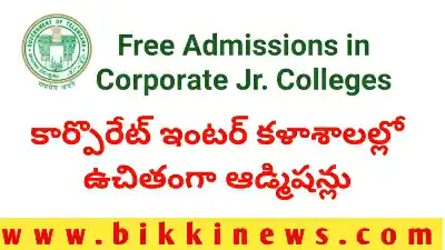 BIKKI NEWS (MAY 16) : free admissions in corporate intermediate colleges scheme. 2025-26 విద్యా సంవత్సరానికి గాను కార్పొరేట్ కళాశాలలో ప్రవేశానికి అర్హులైన ఎస్సీ, ఎస్టీ, బీసీ, మైనార్టీ, వికలాంగ విద్యార్థులు దరఖాస్తు కొరకు ప్రకటన విడుదల చేశారు.