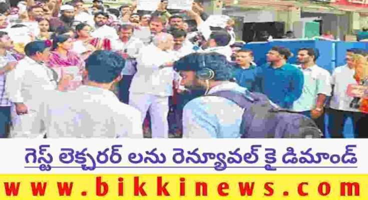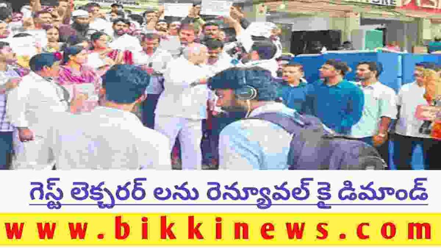 BIKKI NEWS (AUG. 17) : Guest junior lecturers demanding for renewal of service. తెలంగాణ రాష్ట్రంలోని ప్రభుత్వ జూనియర్ కళాశాలల్లో పనిచేస్తున్న గెస్ట్ లెక్చరర్లను ఈ విద్యా సంవత్సరం మొత్తం కొనసాగించాలని డిమాండ్ చేస్తూ భారీ సంఖ్యలో లెక్చరర్లు శుక్రవారం నాంపల్లిలోని ఇంటర్ విద్యా కమిషనరేట్ను ముట్టడించారు.