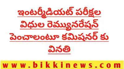 BIKKI NEWS (MAY 17) : intermediate exams remuneration hike issue. తెలంగాణ రాష్ట్రంలో ఈ నెల 22 నుంచి నిర్వహించే ఇంటర్మీడియట్ అడ్వాన్స్ సప్లిమెంటరీ పరీక్ష విధులు నిర్వహించే వారికి రెమ్యునరేషన్ పెంచాలని తెలంగాణ ఇంటర్ బోర్డు కార్యదర్శి శ్రీ కృష్ణ ఆదిత్య ఐఏఎస్ గారికి ఆన్లైన్ లో వినతి పత్రం పంపించినట్లు తెలంగాణ గెజిటెడ్ జూనియర్ లెక్చరర్స్ అసోసియేషన్ -475, రాష్ట్ర అధ్యక్ష, కార్యదర్శులు డాక్టర్ వస్కుల శ్రీనివాస్, డాక్టర్ కొప్పిశెట్టి సురేష్ లు తెలిపారు.