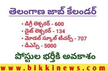 BIKKI NEWS (JULY 21) : Telangana Job calendar 2024 filling Jobs list. తెలంగాణ రాష్ట్ర ప్రభుత్వం త్వరలో ప్రకటించనున్న ఉద్యోగ క్యాలెండర్లో పాఠశాల, కళాశాల విద్యా శాఖలో ఖాళీగా ఉన్న దాదాపు 6500 అధ్యాపకుల, టీచర్ పోస్టులు చేరనున్నాయి.